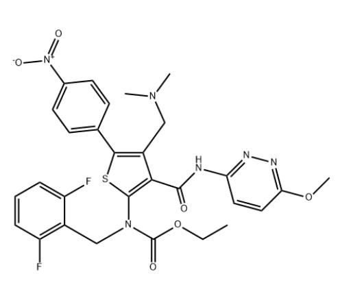 品名: (2,6-二氟苄基){4-[(二甲氨基)甲基]-3-[(6-甲氧基吡嗪-3-基)氨基甲酰基]-5-(4-硝基苯基)噻吩-2-基}氨基甲酸乙酯